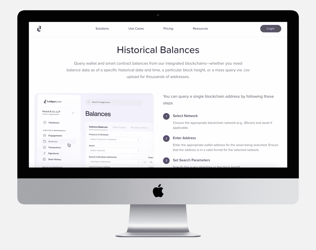 Auditors working with cryptocurrency need a way to efficiently audit crypto transactions and assets because existing tools lack the specialized features that only LedgerLens currently provides. The marketing website must capture the auditor’s attention, and then win their business.