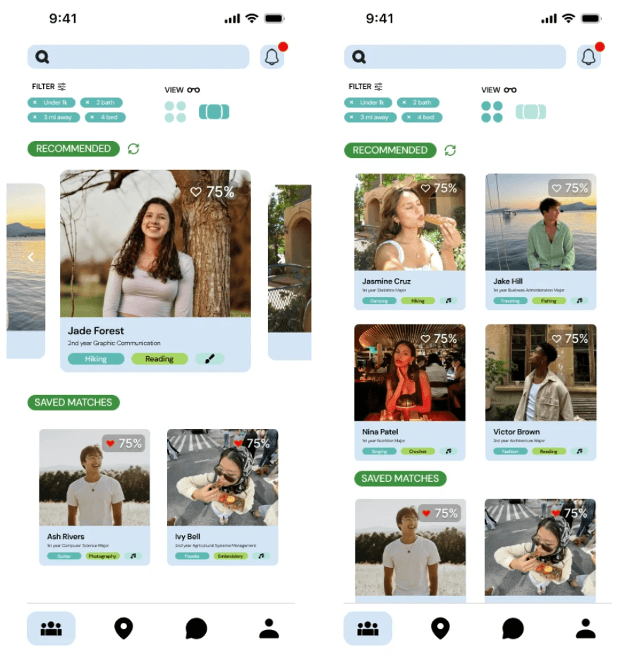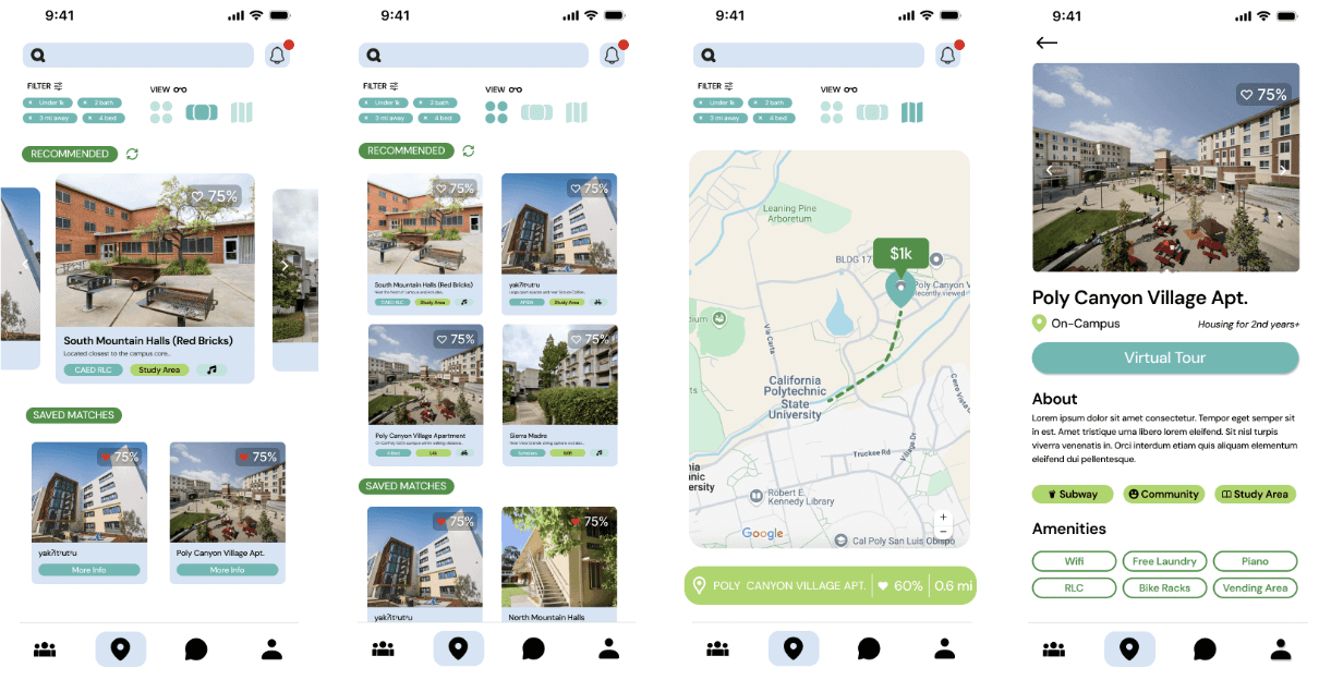 An innovative approach to roommate hunting for Cal Poly SLO students. Inspired by dating apps and popular apps among Gen Z to curate an interactive and helpful roommate finding experience.