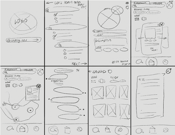 Crazy 8's: Based on the research findings, we drafted our first round of designs on paper to get our ideas out there. We then voted on aspects of each other's designs we liked and wanted to incorporate.